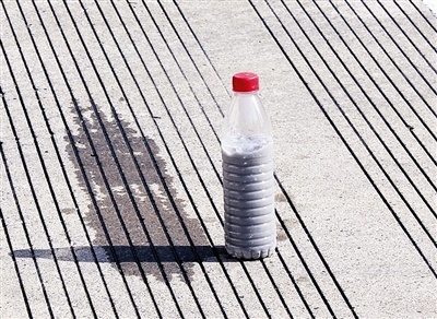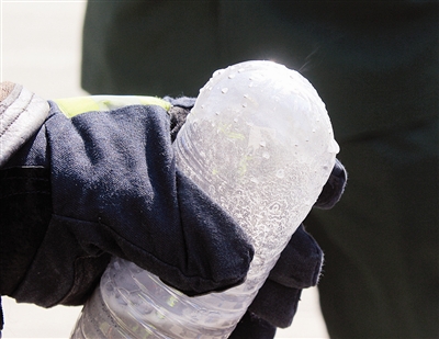 | 消防员将发热包混合物倒入塑料瓶内 |