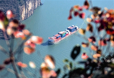 小雪节气过后,长江三峡红叶与江水交相辉映,美景如画。这是25日拍摄的西陵峡江段红叶景色。
