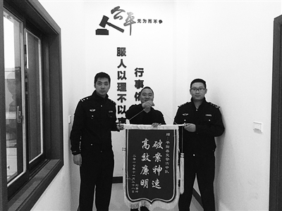 日前,在平阳县万全镇伍垟路路口发生了一起交通事故,一名老人被撞伤倒地,肇事车辆逃逸。接警后,平阳交警六中队民警调取查看监控,细致排查,于次日破获案件。为表示感谢,受伤老人家属给民警送上锦旗。