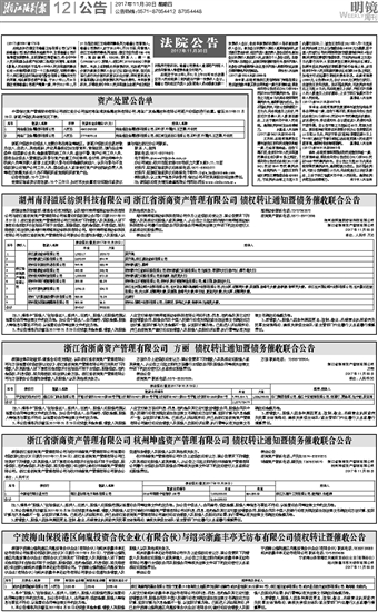 浙江省浙商资产管理有限公司 方丽 债权转让通知暨债务催收联合公告