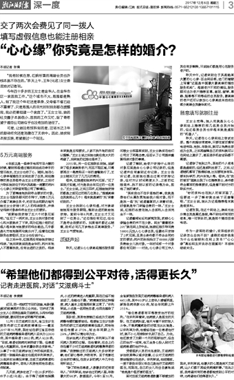 作为一家规范的婚介,安排相亲的记录怎么会找不到?虚假的相亲信息为什么也能顺利在网上发布?“心心缘”真如网友所说存在猫腻吗?本报将继续关注。