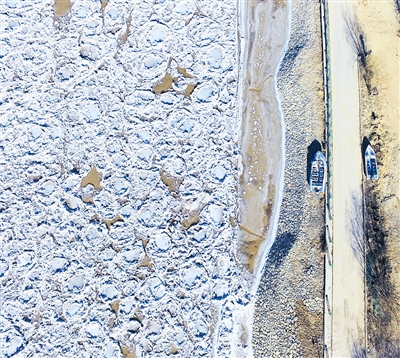 这是12月5日拍摄的黄河内蒙古托克托县封冻河段。