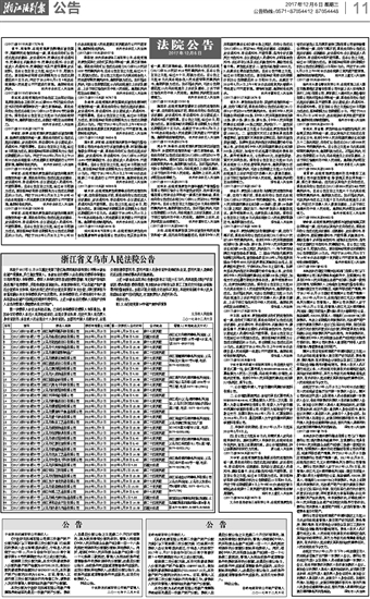 浙江省义乌市人民法院公告