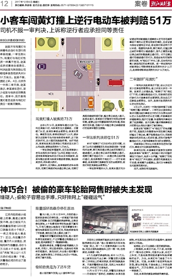 小客车闯黄灯撞上逆行电动车被判赔51万