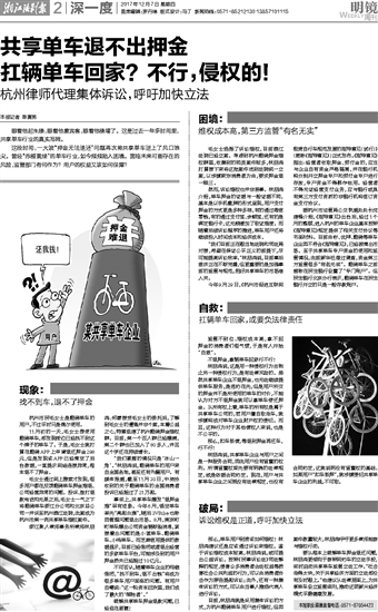 共享单车退不出押金 扛辆单车回家?不行,侵权的!