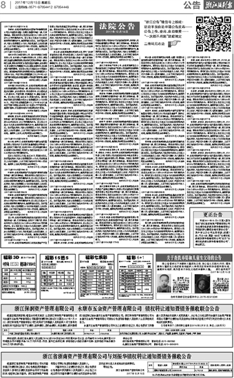浙江保润资产管理有限公司 永康市五金资产管理有限公司 债权转让通知暨债务催收联合公告