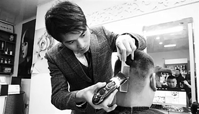| 周仙军正在为客人理发 |
