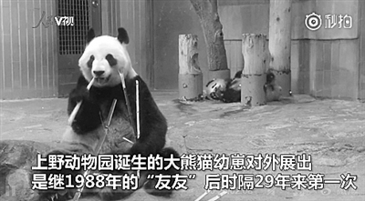 19日起,日本上野动物园旅日大熊猫宝宝“香香”和妈妈“真真”将正式与公众见面。这也是继1988年的“友友”之后,上野动物园诞生的大熊猫宝宝再次对外展出。鉴于参观人数过多, 园方采取抽签的方式,每天抽400组游客参观。