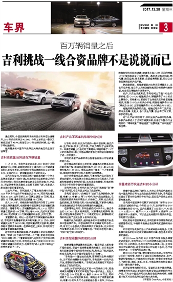 浙江法制报 车界 00016 吉利挑战一线合资品牌不是说说而已 2017-12-20 2 2017年12月20日 星期三
