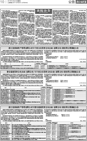 浙江省浙商资产管理有限公司与磐安瑞通投资合伙企业(有限合伙)债权转让暨催收公告