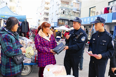 近日,台州市公安局椒江分局区西派出所利用“赶大集”时间点,组织民警深入集市,向群众讲解有关防盗、防抢、防骗等安全防范知识,提高群众的防范意识。