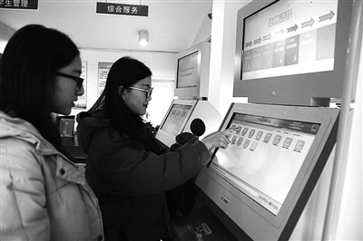 1月4日,浙江农林大学理学院的几名学生,在使用学生自助服务系统打印学籍证明、外语成绩证明等材料。