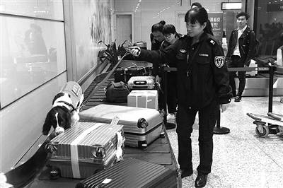| 检疫犬在工作中 |