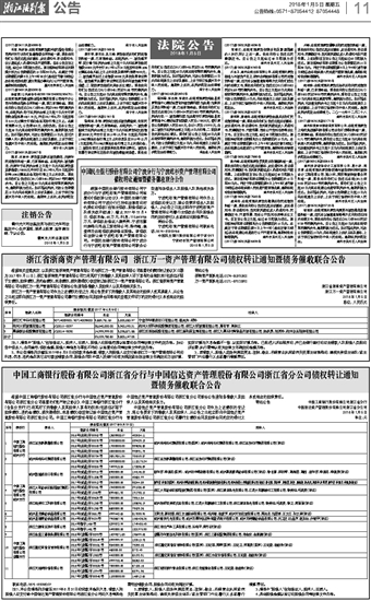 中国工商银行股份有限公司浙江省分行与中国信达资产管理股份有限公司浙江省分公司债权转让通知 暨债务催收联合公告