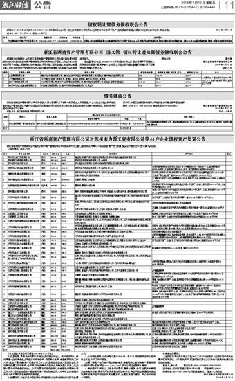 浙江省浙商资产管理有限公司对苏州市力源工贸有限公司等44户企业债权资产处置公告