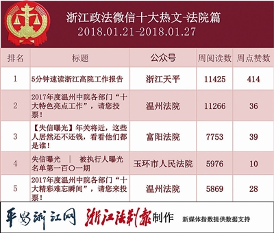 本期法院热文榜中,曝光“老赖”的文章大比例出现。其中,“富阳法院”的《【失信曝光】年关将近,这些人居然还不还钱,看看他们都是谁!》获得广泛关注。这里,小编也希望“老赖”们赶紧还钱,过个安心年。