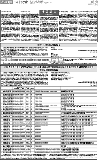 中国农业银行股份有限公司温州分行与中国信达资产管理股份有限公司浙江省分公司债权转让通知 暨债务催收联合公告