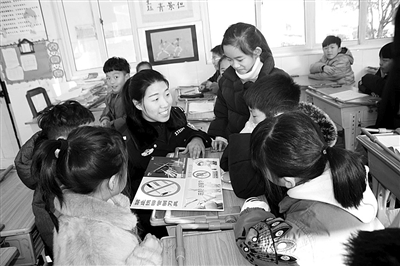 寒假来临,临海市公安局杜桥派出所民警结合当前的“缴刀枪灭隐患”行动,加强对学生的假期安全教育。图为昨天上午,民警在教小朋友识别并远离牙签弩、弹弓等危险物品。