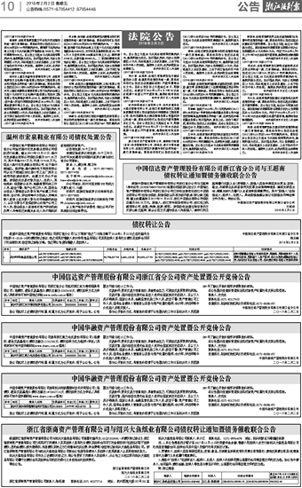 中国信达资产管理股份有限公司浙江省分公司资产处置暨公开竞价公告