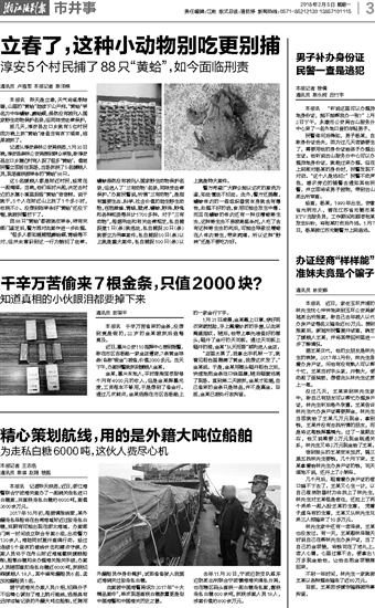 因88只“黄蛤”都被剥皮宰杀,待有关部门鉴定后,警方再对此案作进一步处理。