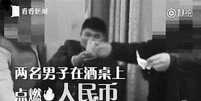 为比谁更土豪 两男子酒后一言不合就烧钱