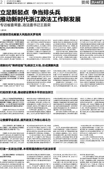 立足新起点 争当排头兵 推动新时代浙江政法工作新发展