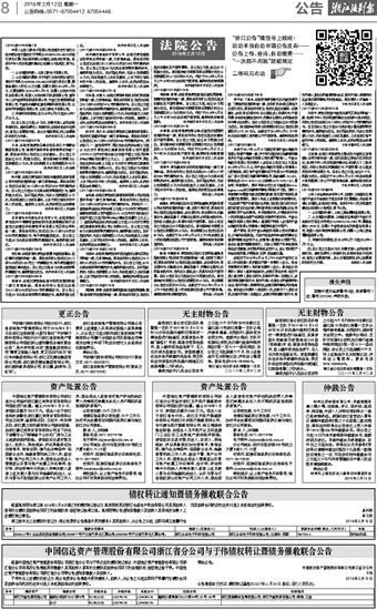 中国信达资产管理股份有限公司浙江省分公司与于伟债权转让暨债务催收联合公告