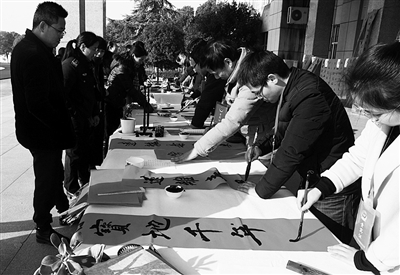翰墨飘香,丹青溢彩。近日,省十里坪强制隔离戒毒所举行主题为“贯彻十九大、万福送万家”的新春送祝福活动,邀请龙游县文联、民进龙游总支部、龙游县书法家协会的书法家走进戒毒所,为戒毒人员送上新春的祝福,并对戒毒人员书写的春联进行评比,坚定戒毒人员的戒毒决心。