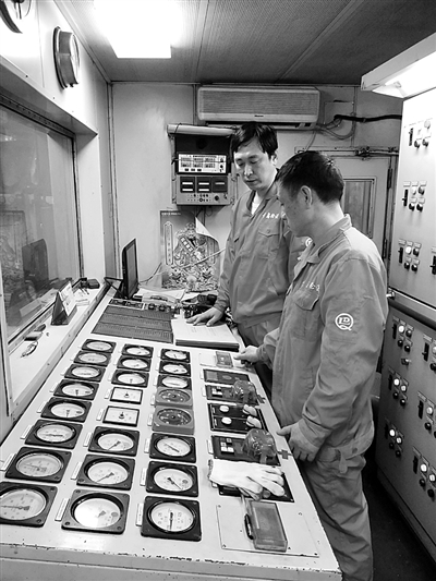 在被称为轮渡心脏的“机舱室”里,轮机长于永尧和大管轮阎芝松正全神贯注地盯着仪表盘,检查各种参数是否正常,陪伴他们的只有各种机器的轰鸣作响声。“机器一旦出错,整个船就开不了了,我们俩必须全程守在这里。”说着,于永尧就出去检查机器有没有漏油漏水、运作是否正常。