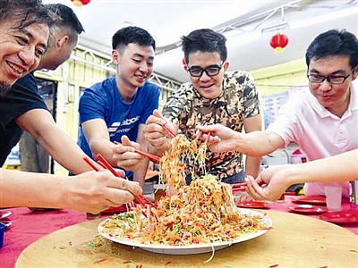 农历春节期间走进一家马来西亚餐厅,往往会目睹这番情景:一桌人围在饭桌前站着,举着筷子把菜高高夹起,嘴里“念念有词”;或者是高举酒杯,拉长声调高喊……