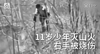 表扬但不提倡! 11岁少年单独灭山火被烧伤