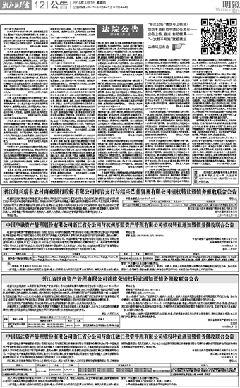 中国信达资产管理股份有限公司浙江省分公司与浙江融仁投资管理有限公司债权转让通知暨债务催收联合公告