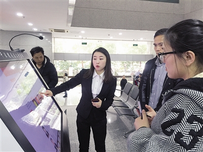 | 江干法院工作人员介绍诉讼服务中心的设备 |
