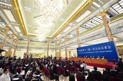 3月6日,全国政协十三届一次会议在北京人民大会堂举行记者会,民主党派中央和全国工商联领导人回答记者提问。