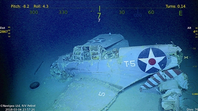 这张由微软创始人之一保罗·艾伦提供的照片显示的是3月4日在澳大利亚附近海底拍摄的二战美国海军“列克星敦”号航母舰载飞机的残骸。