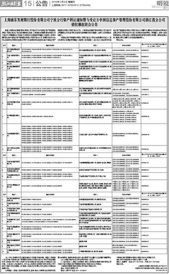 上海浦东发展银行股份有限公司宁波分行资产转让通知暨与受让方中国信达资产管理股份有限公司浙江省分公司 债权催收联合公告
