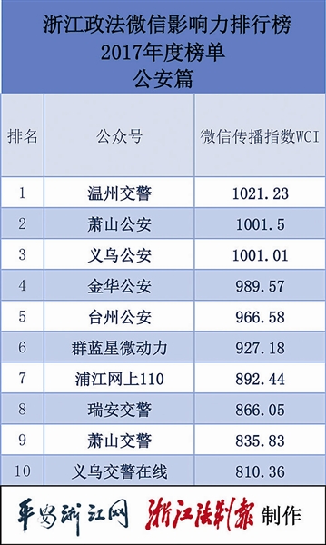 正月的最后一周,浙江政法微信排行榜依惯例要为大家揭晓年度榜单了——2017年公检法司系统年度十强!各位一定期待很久了吧!