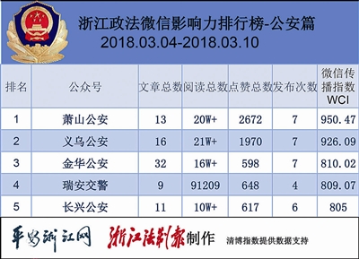 本期公安榜,“温州交警”包揽热文榜前三名,榜单上博眼球的文章都与“车”有关,看来,“交通安全知识”是老百姓十分喜爱的主题。