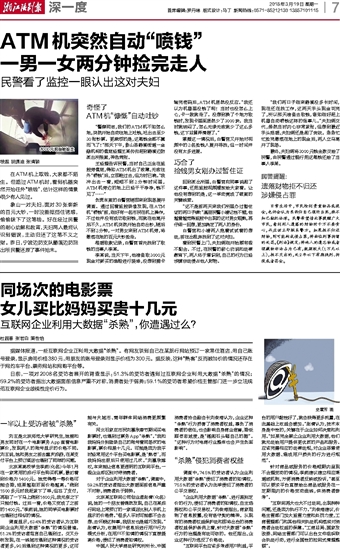 ATM机突然自动“喷钱” 一男一女两分钟捡完走人