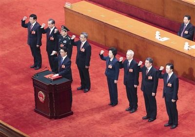 | 国务院副总理、国务委员、秘书长进行宪法宣誓 新华社 庞兴雷 摄 |