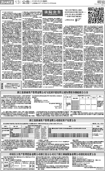 中国东方资产管理股份有限公司浙江省分公司关于浙江绣锦服饰有限公司债权的处置公告