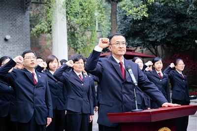 昨天,在杭州市检察院党组书记、检察长陈海鹰的带领下,杭州市检察院员额检察官等干警代表共50人,在杭州“五四宪法”历史资料陈列馆,举行了庄严的宪法宣誓仪式。
