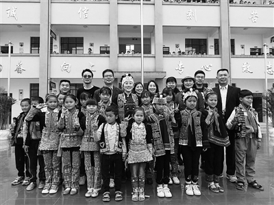 | 浙江各界爱心人士与金平县十里村小学学生们合影 |