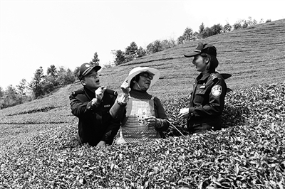 漫山新茶吐翠芽,又到茶姑采茶时。昨天上午,东阳市公安局虎鹿派出所民警来到东白山茶场走访,提醒茶农们注意自身安全,妥善保管工资收入、茶叶销售款,谨防电信诈骗。通讯员 徐步文