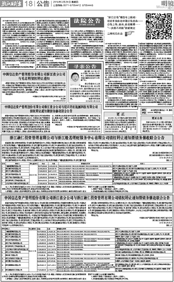 中国信达资产管理股份有限公司浙江省分公司与浙江融仁投资管理有限公司债权转让通知暨债务催收联合公告