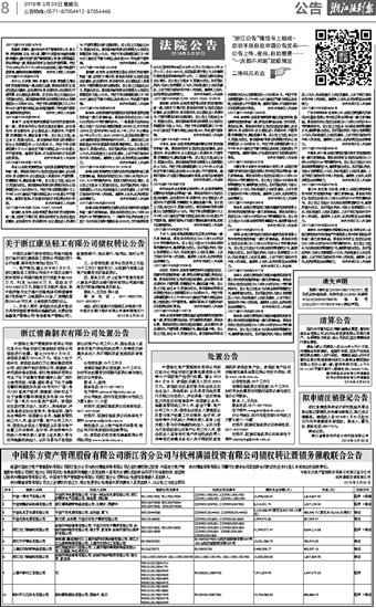 中国东方资产管理股份有限公司浙江省分公司与杭州满溢投资有限公司债权转让暨债务催收联合公告