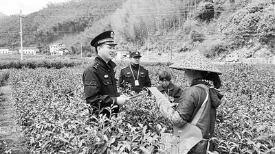 每年3-5月,是春茶的采摘季节。连日来,杭州淳安石林、里商的茶农们纷纷忙着采摘茶叶。由于不少茶农雇佣了外地人员来此采茶,因此辖区内的流动人员激增。为确保辖区治安稳定,石林派出所组织民警走进茶园、走上街头,开展专门针对茶农的安全宣传。民警还现场接受茶农的咨询,受到茶农们的热情欢迎。