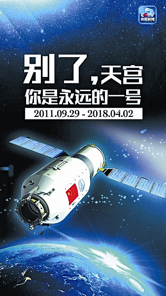 记者2日从中国载人航天工程办公室了解到,经北京航天飞行控制中心和有关机构监测分析,4月2日8时15分左右,天宫一号目标飞行器已再入大气层,再入落区位于南太平洋中部区域,绝大部分器件在再入大气层过程中烧蚀销毁。央视供图