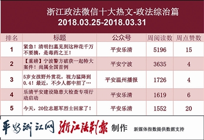 本期政法委榜,实力老将“平安乐清”夺魁,《紧急!清明扫墓见到这种花千万不要摘,是毒药之王!》一文收获阅读数5000+。哪怕花儿再艳,“路边的野花不要采”,记住了吗?