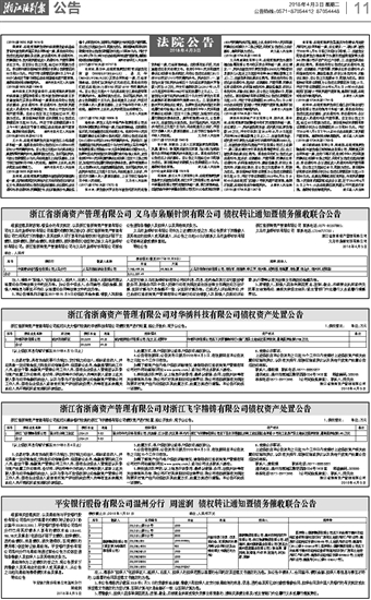 浙江省浙商资产管理有限公司 义乌市枭顺针织有限公司 债权转让通知暨债务催收联合公告